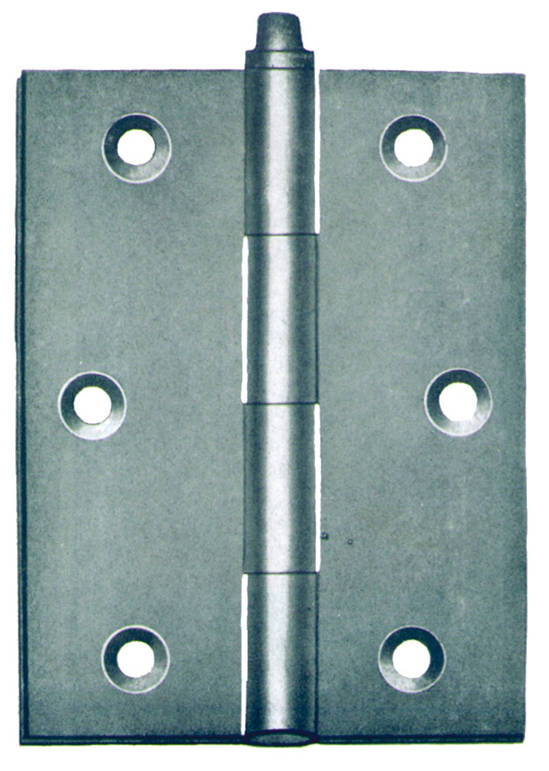 In lamiera di ferro lucido, a doppio foglio, perno sfilabile. \NL\NL