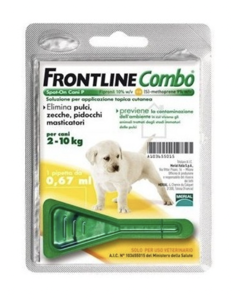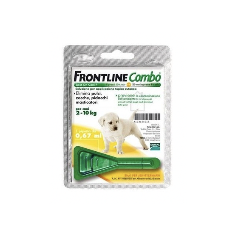 FRONTLINE Combo® Spot-On protegge i cuccioli dalle otto settimane di età da pulci, zecche e pidocchi e previene contemporaneamente la contaminazione della casa da uova e larve di pulci, dopo l’applicazione sull’animale; la sua presentazione in monopipetta consente inoltre di effettuare il secondo trattamento con il prodotto adatto al peso raggiunto dai cuccioli in accrescimento in quel momento, evitando che venga somministrata una dose di prodotto insufficiente.