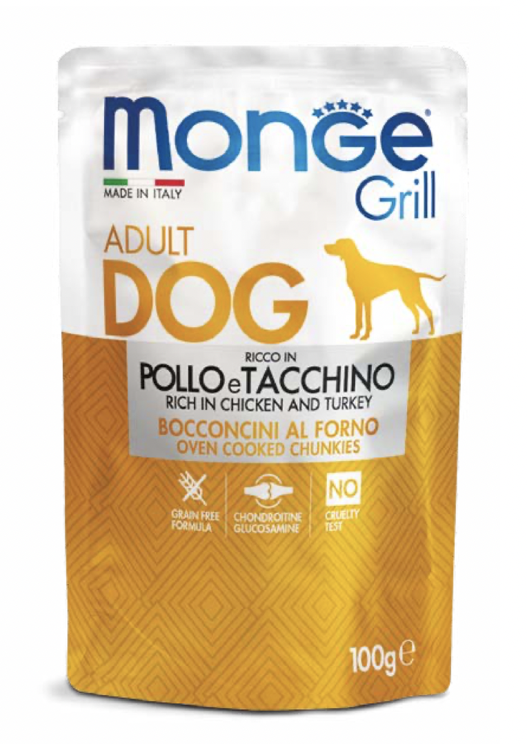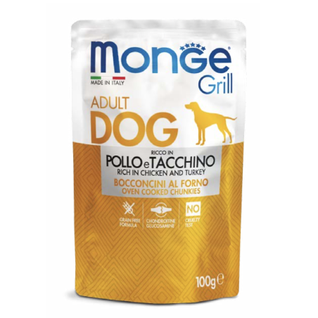 Alimento completo per cani sviluppato appositamente per deliziare il palato dei nostri amici a 4 zampe. Una ricetta preparata con carne di pollo e tacchino cotta al forno. Formulata senza cereali e integrata con glucosamina e condrotina per il supporto articolare.