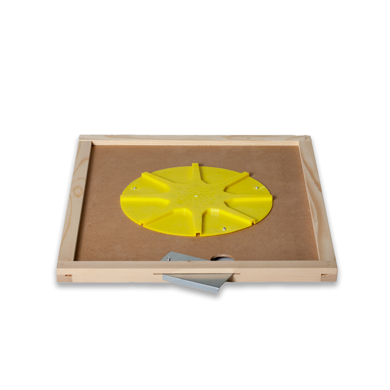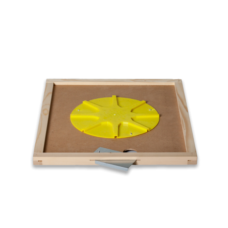 Apiscampo a stella, in plastica a 8 vie e montato su una tavola Delle dimensioni 50×50 cm. Presente la saracinesca.