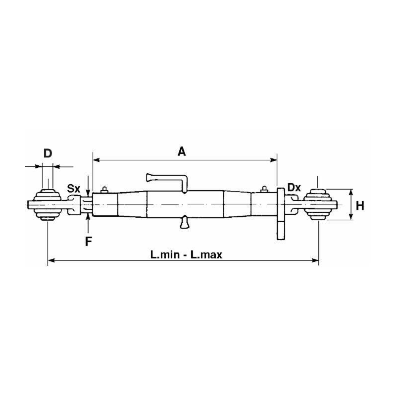 3° Punto Top meccanico Cat. 2° 22x2,5. Lunghezza: 460 mm chiuso, 680 mm aperto.