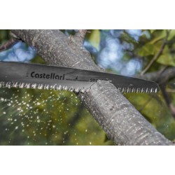 I seghetti professionali della serie G sono muniti di fodero con fibbia orientabile. Le lame sono in acciaio ad alto contenuto di carbonio con ricopertura al cromo duro per aumentare la penetrazione nel ramo e come trattamento anti-ruggine. Il taglio netto e preciso rende la superficie del legno liscia e levigata, questo evita infezioni e consente una rapida cicatrizzazione del ramo. I denti sono affilati su 3 piani e con tempra ad impulsi per prolungare al massimo la durata dell’affilatura. La particolare lavorazione della lama detta “a piani svasati” è studiata per migliorare la penetrazione nel ramo diminuendo radicalmente l’attrito.