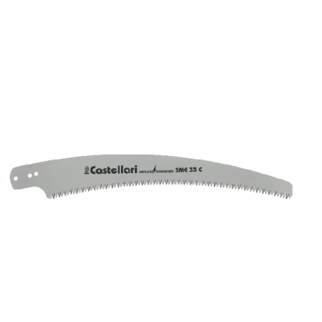 Lama in acciaio ad alto contenuto di carbonio con ricopertura al cromo duro per aumentare la penetrazione nel ramo e come trattamento anti-ruggine. Il taglio netto e preciso rende la superficie del legno liscia e levigata, questo evita infezioni e consente una rapida cicatrizzazione del ramo. I denti sono affilati su 3 piani e con tempra ad impulsi per prolungare al massimo la durata dell’affilatura. La particolare lavorazione della lama detta “a piani svasati” è studiata per migliorare la penetrazione nel ramo diminuendo radicalmente l’attrito.