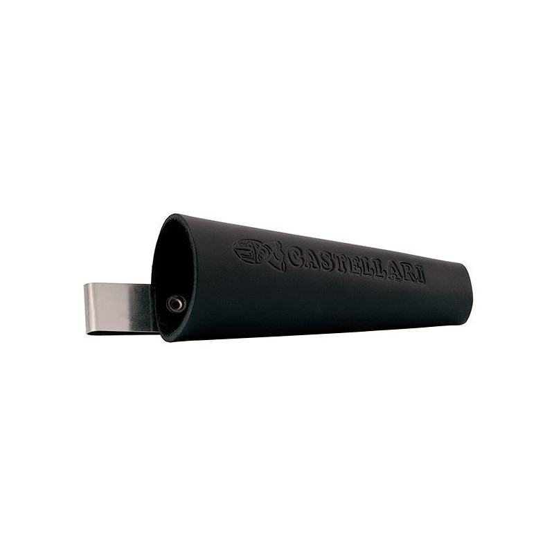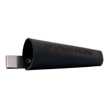 Fodero a cono in pelle “fiore di bovino”. Adatto per tutte le forbici. Molla in acciaio inox.