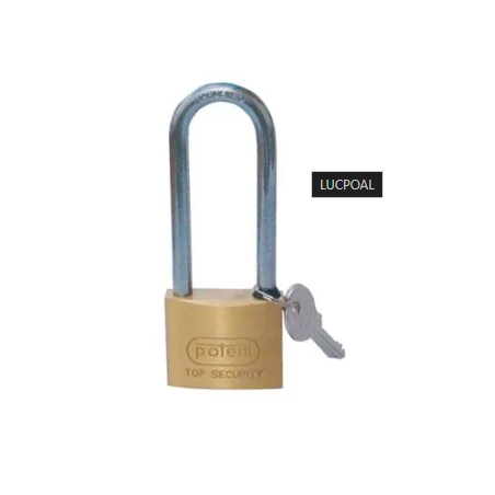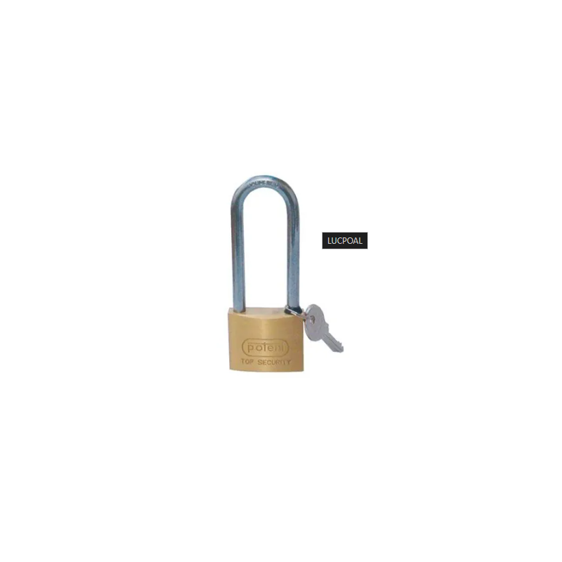 LUCCHETTO POTENT AD ARCO LUNGOIn ottone massiccio, con arco in acciaio temprato e cromato, chiave tipo universale, gommina a protezione meccanismi interni,