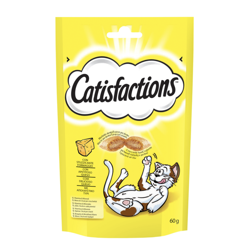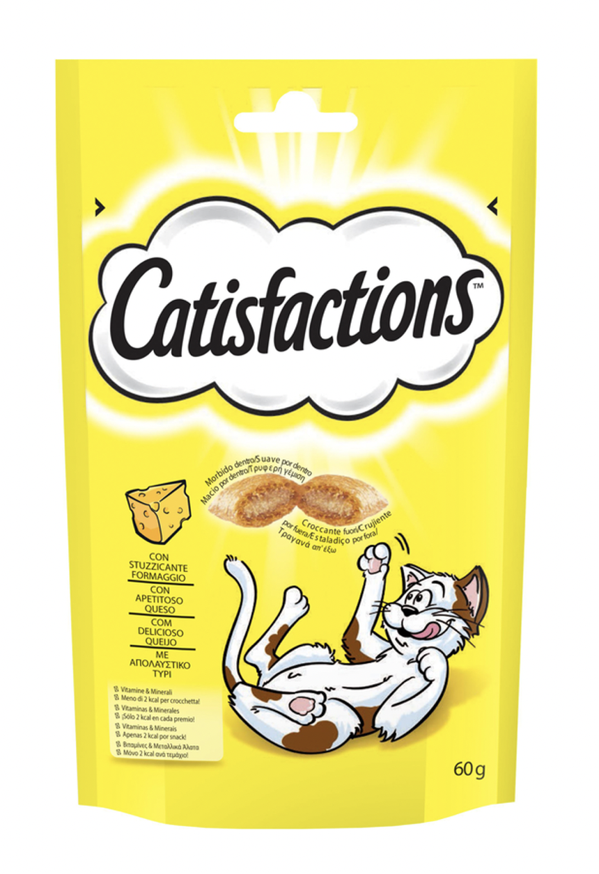 CATISFACTIONS® è una gamma di irresistibili snack con cui potrai premiare il tuo gatto in ogni momento della giornata.