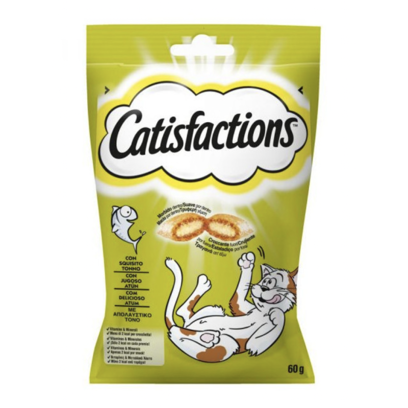 CATISFACTIONS® è una gamma di irresistibili snack con cui potrai premiare il tuo gatto in ogni momento della giornata.