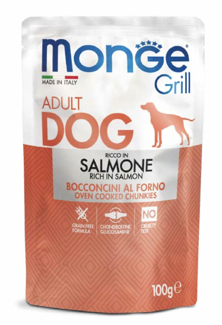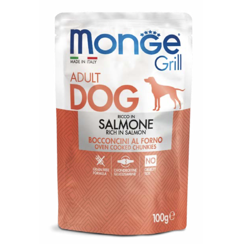 Alimento completo per cani sviluppato appositamente per deliziare il palato dei nostri amici a 4 zampe. Una ricetta preparata con salmone cotto al forno. Formulata senza cereali e integrata con glucosamina e condrotina per il supporto articolare.