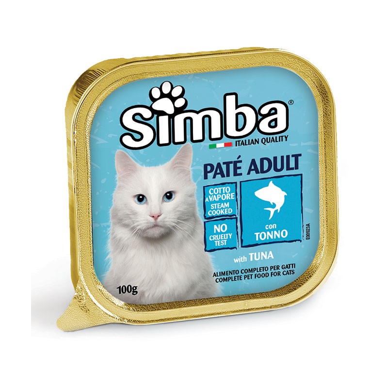 SIMBA CAT PATÉ CON TONNO è un alimento completo per gatti adulti. Paté formulato con ingredienti di qualità come il tonno, fonte di proteine e minerali, cotto a vapore al fine di esaltare il loro naturale gusto e stimolare il quotidiano appetito del tuo animale. La formulazione è stata sviluppata con una specifica combinazione di vitamine A-D3-E per rispondere alle esigenze nutrizionali e soddisfare i fabbisogni quotidiani degli animali. Senza coloranti e conservanti aggiunti.