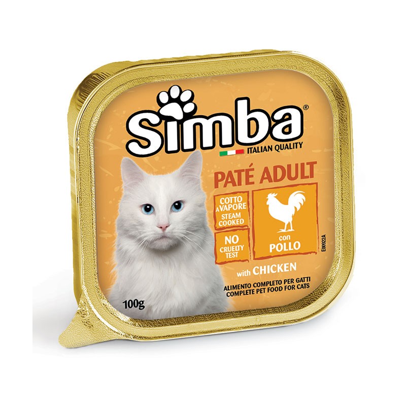 SIMBA CAT PATÉ CON POLLO è un alimento completo per gatti adulti. Paté formulato con ingredienti di qualità come il pollo, fonte di proteine e minerali, cotto a vapore al fine di esaltare il loro naturale gusto e stimolare il quotidiano appetito del tuo animale. La formulazione è stata sviluppata con una specifica combinazione di vitamine A-D3-E per rispondere alle esigenze nutrizionali e soddisfare i fabbisogni quotidiani degli animali. Senza coloranti e conservanti aggiunti.