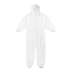 Tuta protettiva in polipropilene da 40 gr/m2 di colore bianco con cappuccio elastico.