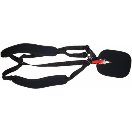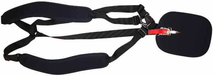 Bretella professionale per decespugliatore con protezione e sgancio rapido.