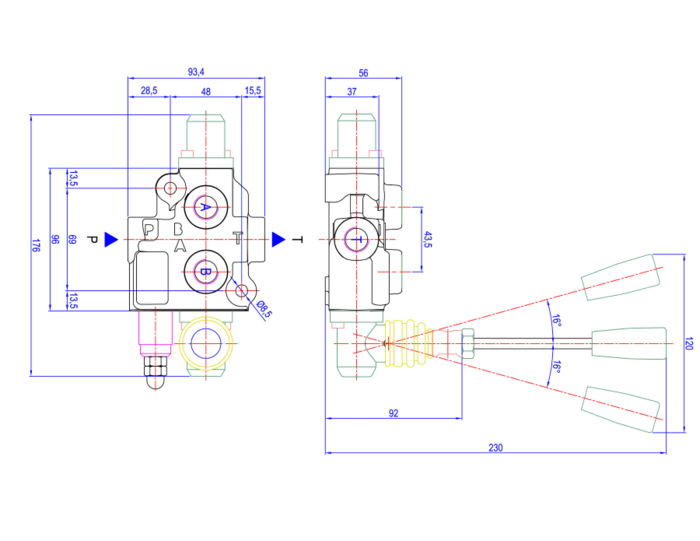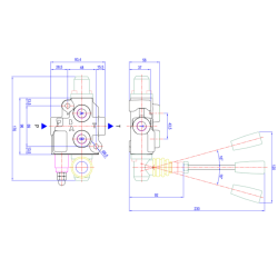 Distributore modello basic da 3/8" a 1 leva doppio effetto con ritorno a molla, 40 litri. Senza predisposizione per il carry over