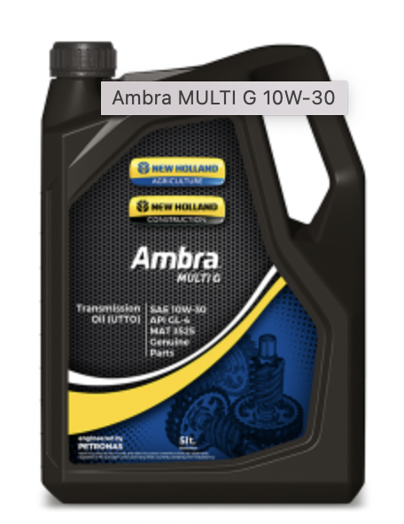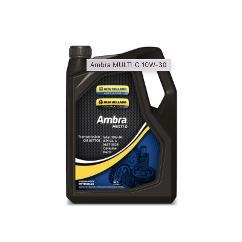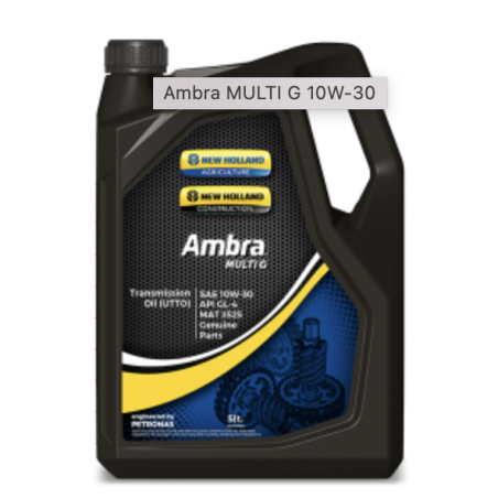PETRONAS Ambra MULTI G è un olio per trasmissioni multiuso (U.T.T.O) sviluppato in collaborazione con NEW HOLLAND per l'utilizzo su trattori, attrezzature agricole e macchine edili. Adatto per l'uso in cambi di trattori tradizionali, cambi CVT, Power-Shift e Shuttle-Shift, trasmissioni posteriori con freni a bagno d'olio, trasmissioni finali laterali, trasmissioni finali alle ruote, differenziali, paranchi idraulici, pulegge delle trasmissioni, trasmissioni meccaniche e idrostatiche e unità servosterzo.