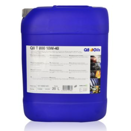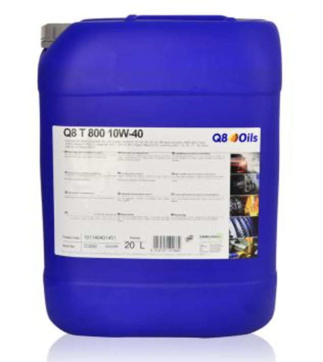 Q8 T 800 è un lubrificante del tipo Genuine SHPDO (Super High Performance Diesel Oil) messo a punto per essere impiegato con intervalli di sostituzione prolungati. E’ stato sviluppato per l’uso nei motori diesel aspirati e turbocompressi, con o senza intercooler, di ultima generazione, anche con sistema EGR (ricircolo dei gas di scarico), SCR o altri dispositivi di trattamento dei gas di scarico.