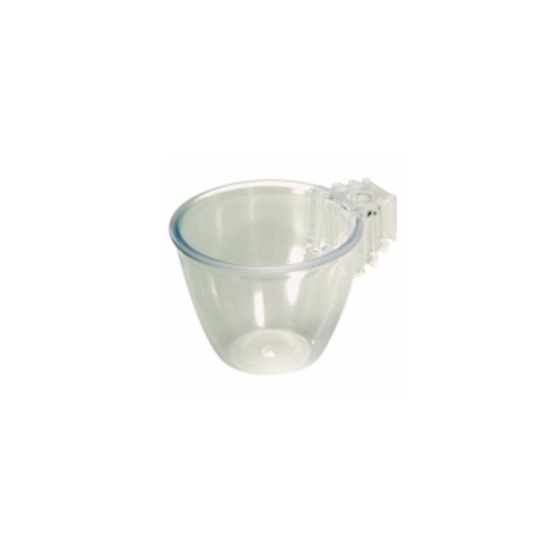 Porta uovo universale per volatili, ideale per contenere l'uovo sodo o mescolato al pastoncino. Da inserire all'interno della gabbia tramite il gancio esterno in plastica. Realizzato in plastica.