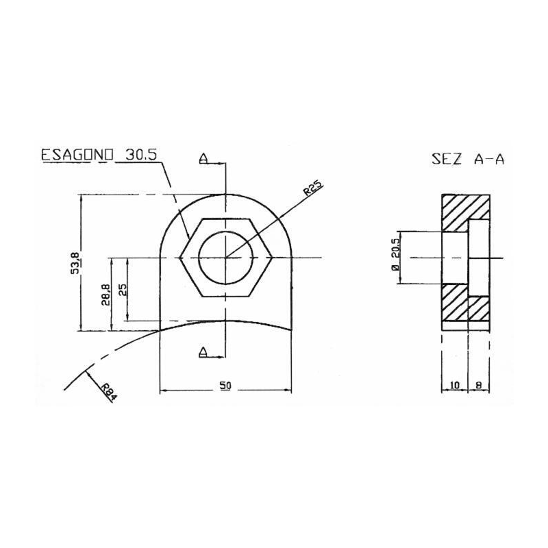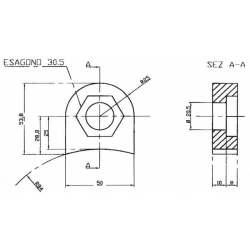 Supporto mazza per trincia con esagono Ø 20,5, Altezza 53mm, larghezza 50mm, Ø interno 20,5mm, esagono 30,5mm.