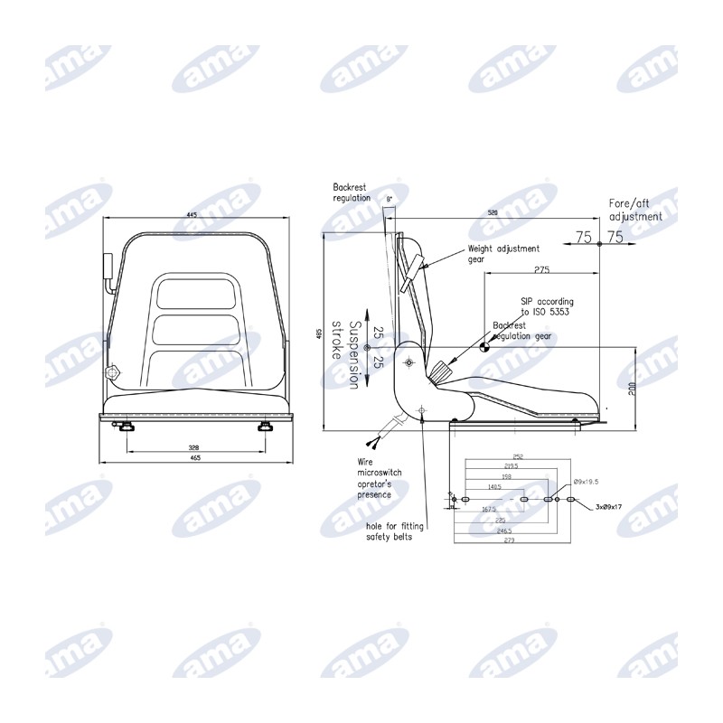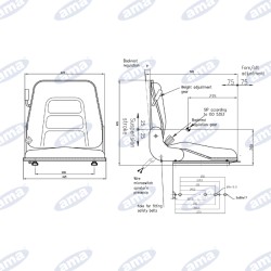 Sedile per carrelli elevatori, cingolati, miniescavatori, pale Seat for fork lifts, crawlers, mini-excavators
